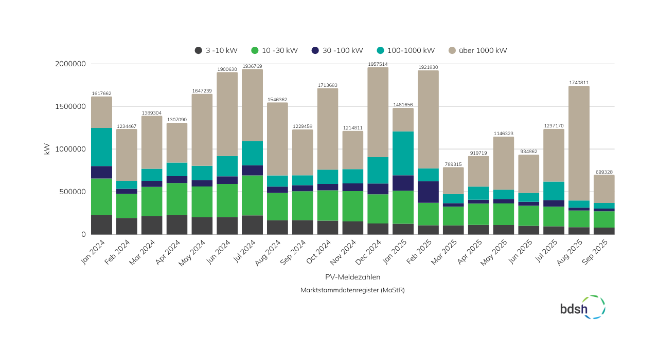 Im Bericht wird zudem explizit betont, dass der Ausbau von Aufdachanlagen keinesfalls zurückgehen darf, wenn die Klimaziele eingehalten werden sollen. Die politische Strategie, den Ausbau erneuerbarer Energien zu verlangsamen, könnte außerdem die Versorgungssicherheit der Bundesregierung gefährden. Zudem wird die Bundesrepublik ohne Photovoltaik weder ihre Klimaziele noch die der EU erreichen können. Die aktuellen Zubauzahlen laut Marktstammdatenregister zeigen deutlich, dass bereits seit mehreren Monaten ein deutlicher Rückgang beim Zubau in den Anlagenbereichen bis 30 kWp Anlagengröße zu verzeichnen ist.